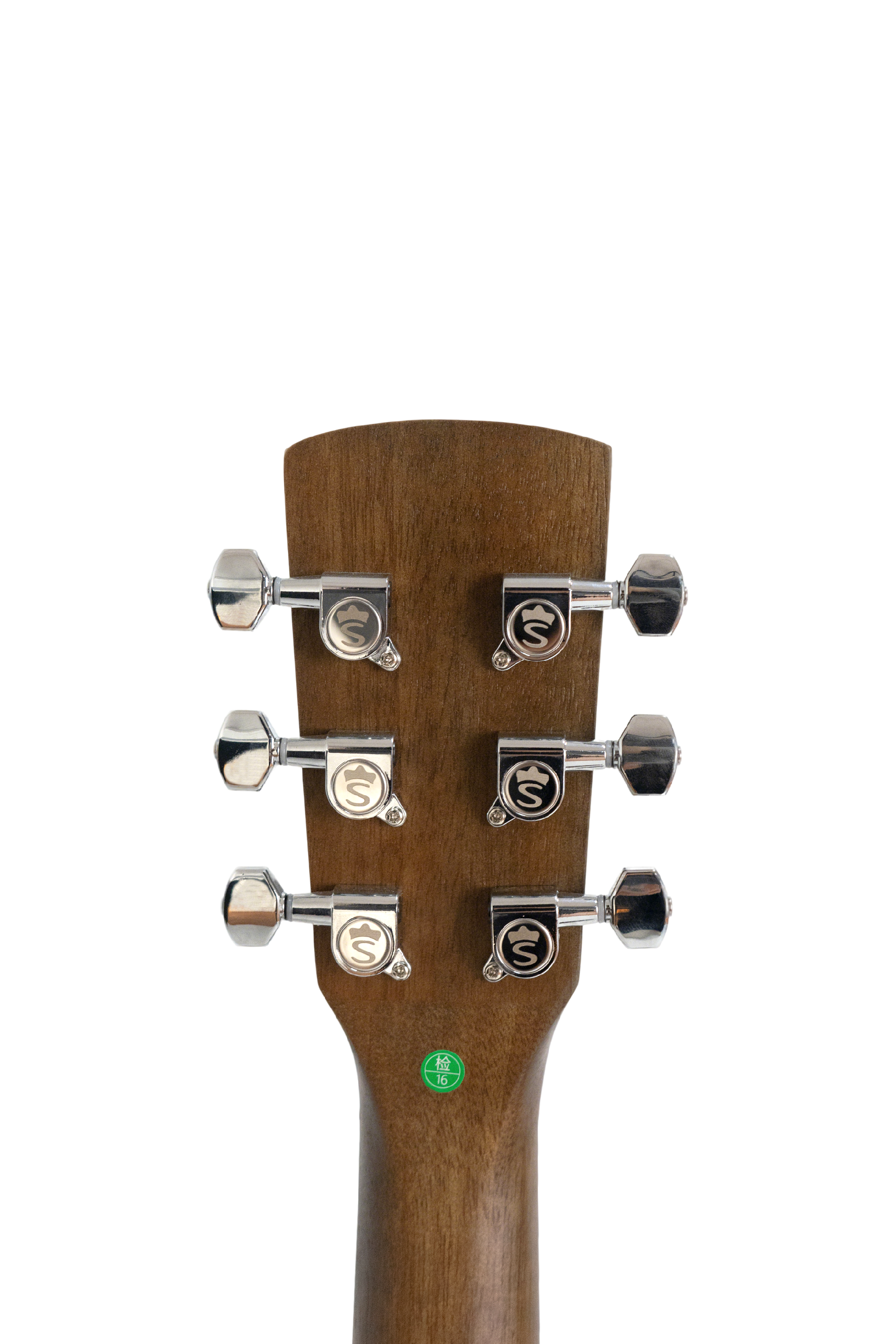 Die-cast chrome tuning pegs with brass gears, offering strong corrosion and rust resistance.