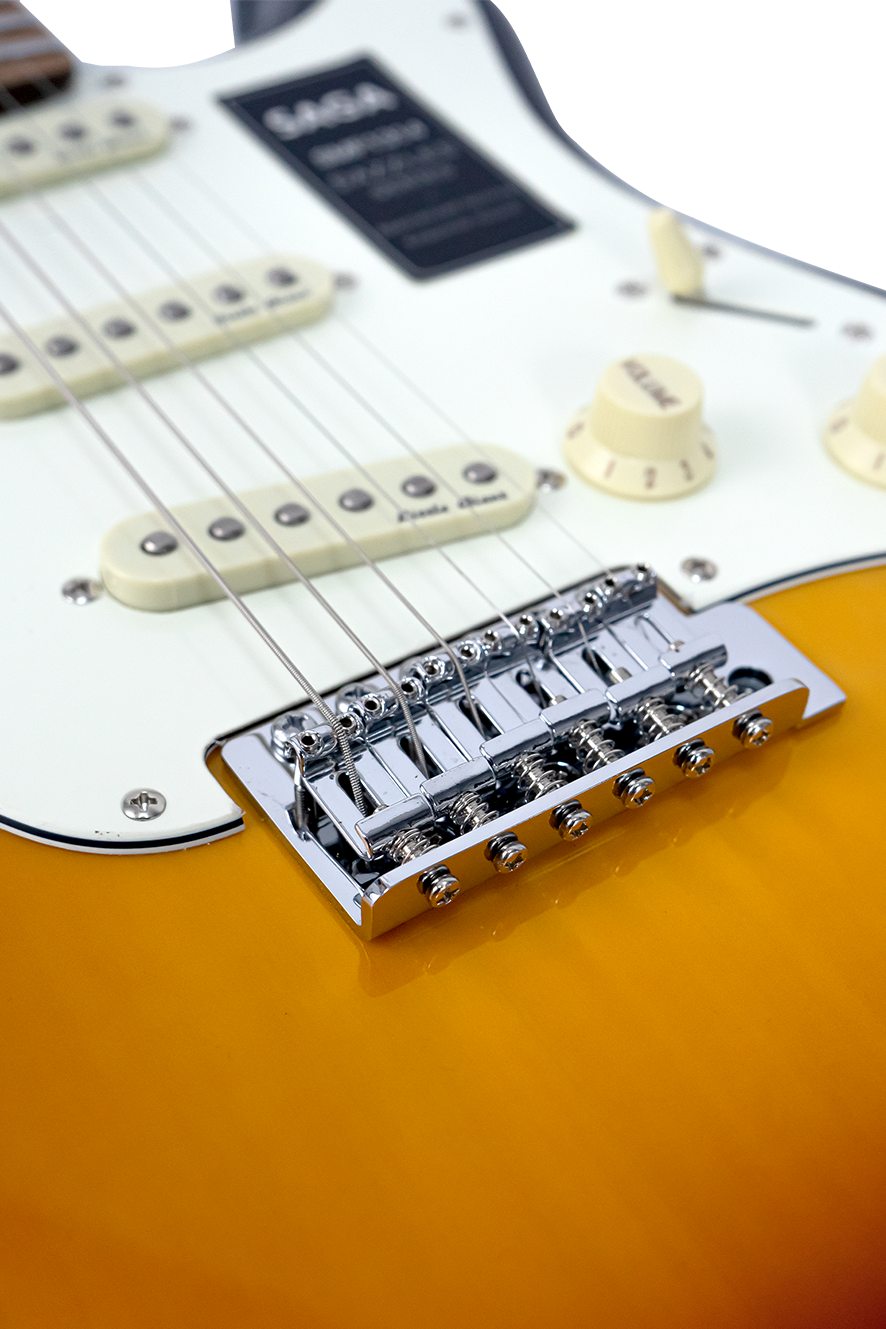 The SMF1314 is the first model in the SAGA Dazzles electric guitar series. Since its launch, it has received wide acclaim from musicians and consumers across multiple countries. Equipped with SAGA’s self-developed Little Giant pickups, many players believe its tone rivals that of international electric guitars priced at $2,000. They also praise its appearance and playability as being on par with leading global brands.