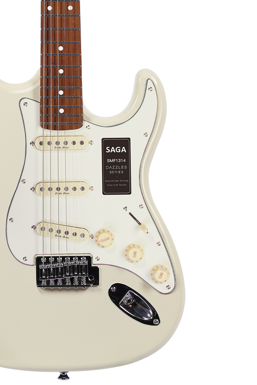 The SMF1314 is the first model in the SAGA Dazzles electric guitar series. Since its launch, it has received wide acclaim from musicians and consumers across multiple countries. Equipped with SAGA’s self-developed Little Giant pickups, many players believe its tone rivals that of international electric guitars priced at $2,000. They also praise its appearance and playability as being on par with leading global brands.