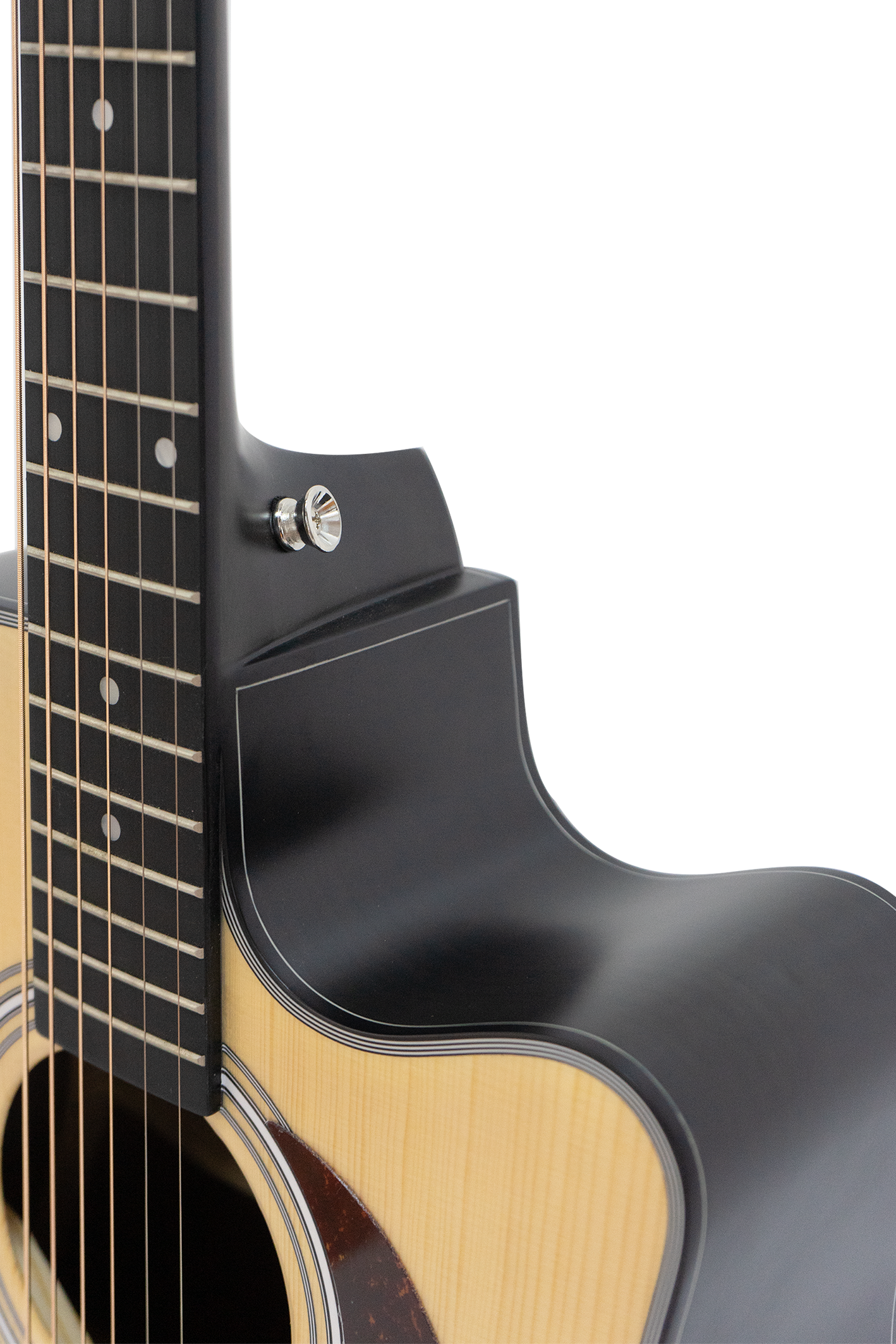 Laminated walnut back and sides create a sturdy yet receptive platform for the vibrating string energy sent by the guitar's top, which is less susceptible to changes in temperature and humidity.