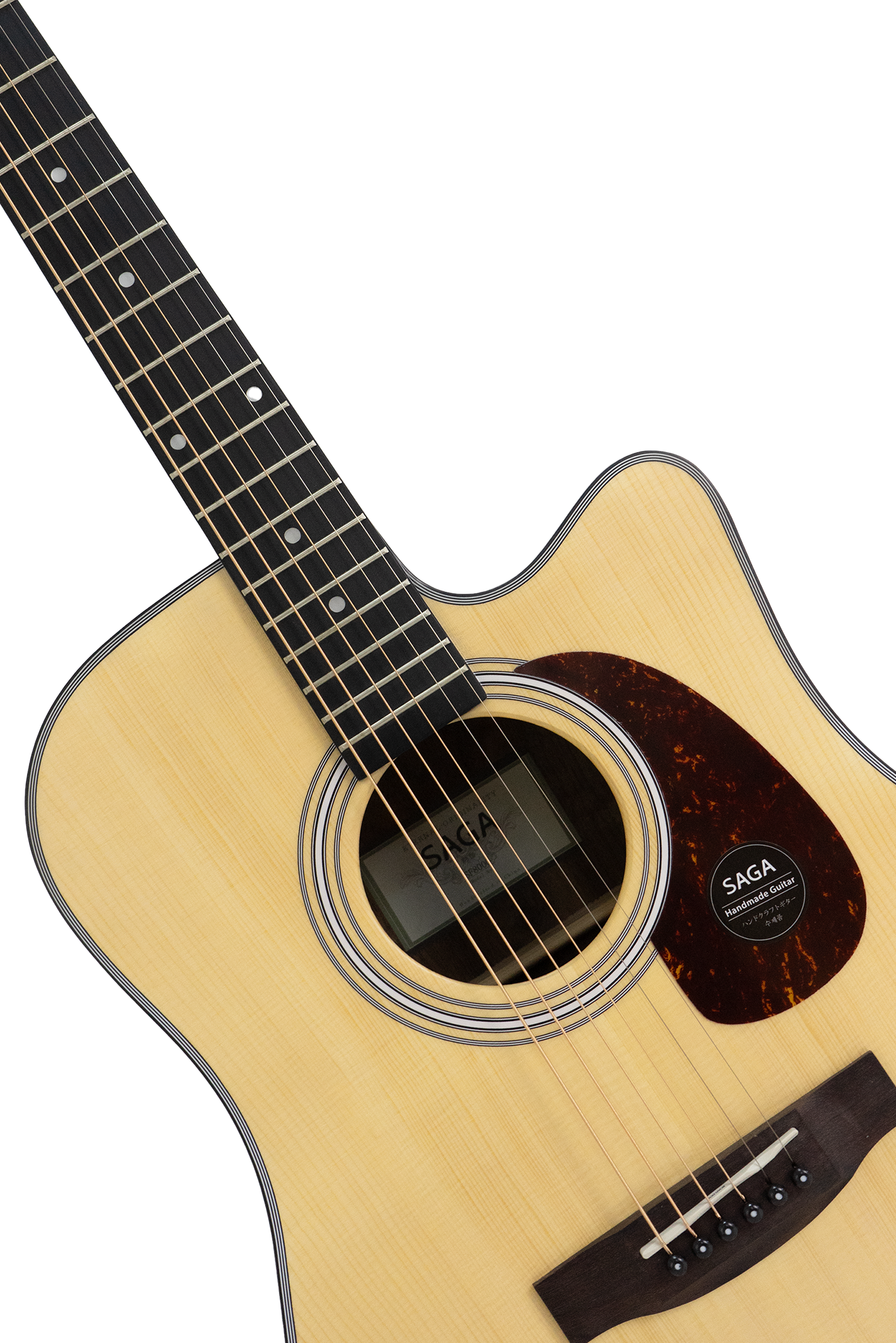 SAGA 800 Series has a Solid Sitka Spruce top, which blends stiffness and elasticity in just the right proportions, resulting in a broad dynamic range with crisp articulation.
