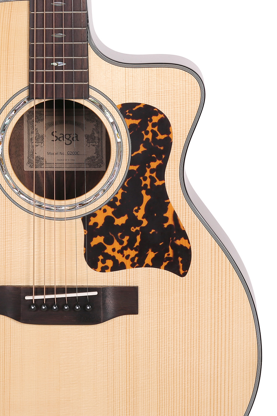 Built with SAGA’s trusted craftsmanship, the G200C/D200C upgrades the G100C with rosewood back and sides and a mahogany neck, delivering rich, resonant tone and refined playability — perfect for players seeking quality and style.