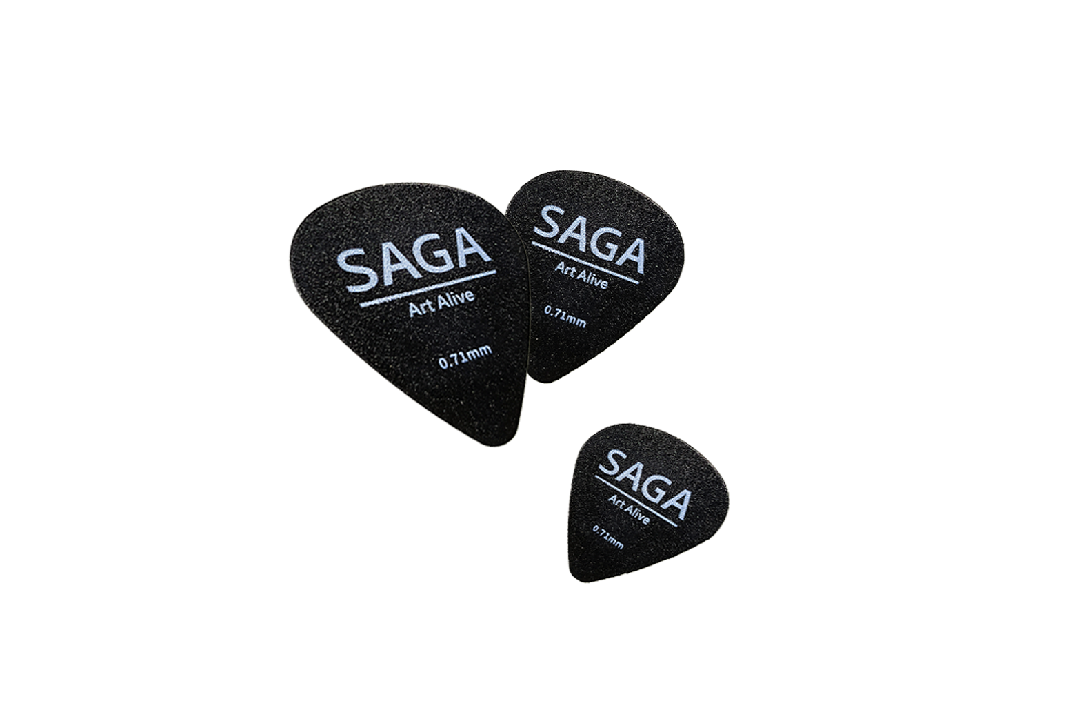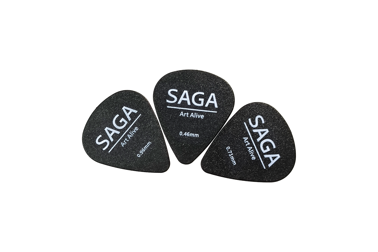 The SAGA P1 Picks are made of durable ABS with a matte frosted surface for enhanced grip and wear resistance. Each set includes three picks of different thicknesses, allowing versatile tonal expression: